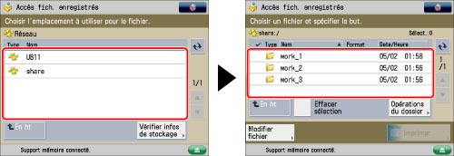 Appuyer sur [Accès fich. enregistrés] → [Réseau].