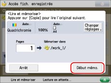 Si l'écran suivant s'affiche après la lecture du dernier lot d'originaux, appuyer sur [Début mémo.].