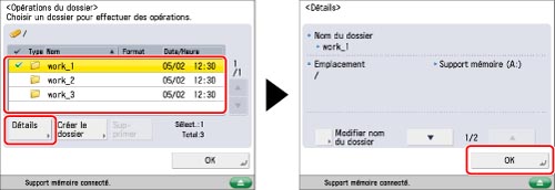 Sélectionner le dossier souhaité → appuyer sur [Détails] → [OK].