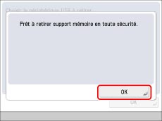 Retirer le support mémoire du port USB → appuyer sur [OK].