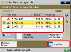 Sélectionner le fichier souhaité → appuyer sur [Imprimer].