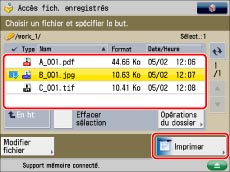 Sélectionner le fichier souhaité → appuyer sur [Imprimer].