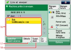 Pour afficher les méthodes de sélection des destinataires ou la liste de destinataires. |