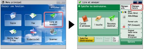 Appuyer sur [Lire et envoyer] → [Réglages favoris].
