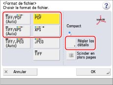 PDF (Compact) ou XPS (Compact) ne peut être sélectionné qu'avec les réglages suivants :