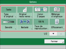 Pour plus d'informations sur les réglages suivants, voir les sections correspondantes :