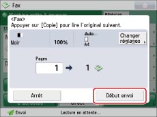 pour chaque original. Une fois la lecture terminée, appuyer sur [Début envoi].