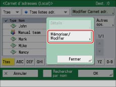 Pour savoir comment exécuter cette opération à partir de l'écran Fax, voir "Ecran des fonctions de base de la fonction Fax" dans