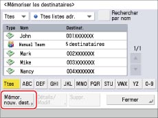 Appuyer sur [Fax] → [Carnet d'adresses].