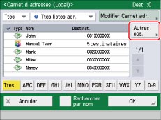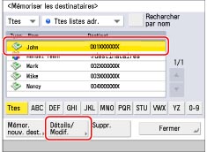 Sélectionner le destinataire à modifier → appuyer sur [Détails/Modif.].