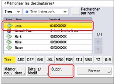 Sélectionner le destinataire à supprimer → appuyer sur [Suppr.].