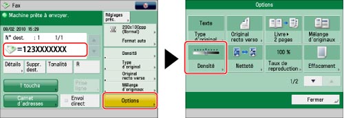 Spécifier les destinataires → appuyer sur [Options] → [Densité].