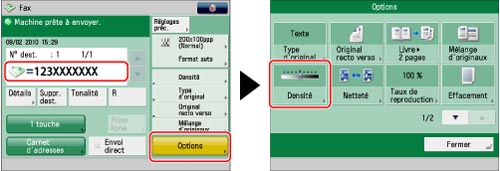 Lorsque l'on sélectionne l'option [Régler] du mode <Densité du fond> et que l'on effectue des réglages fins, le réglage [Auto] du mode <Densité du fond> est annulé. De même, si on appuie sur [Auto] après avoir réglé la densité manuellement, les réglages sont annulés. La machine règle automatiquement la densité en fonction du fond.