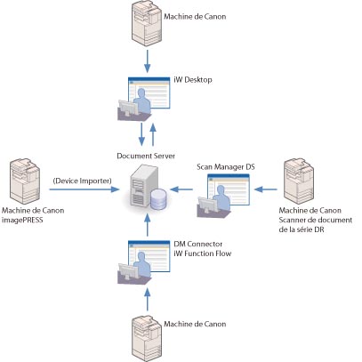Les documents importés avec iW Scan Manager DS peuvent être libérés vers Document Server, logiciel central de la série iW utilisables dans de nombreux contextes.