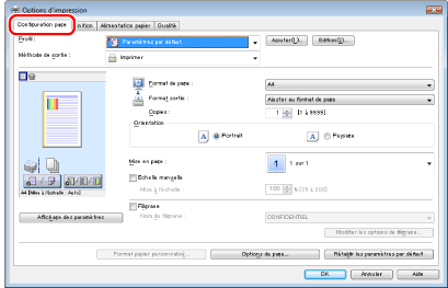L'affichage peut varier en fonction du système d'exploitation, ainsi que du type et de la version du pilote d'impression.