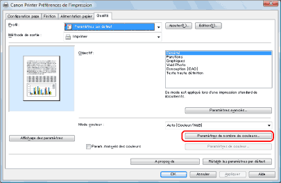 L'affichage peut varier en fonction du système d'exploitation, ainsi que du type et de la version du pilote d'impression.