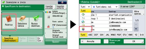 Premere [Rubrica] → aprire l'elenco → selezionare