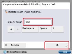 Immettere il numero di fax del partner commerciale → premere [OK].
