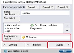 Da questo momento si consiglia di controllare regolarmente la mailbox "Posta diretta" e, nel caso vengano rilevati fax necessari, aggiungere le condizioni di inoltro in modo che tali fax vengano inoltrati nella mailbox "Lavoro".