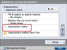 Selezionare [Impostazioni funzione] → [Ricezione/Inoltro] → [Impostazioni comuni].
