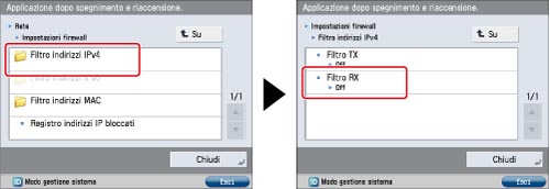 Selezionare [Filtro indirizzi IPv4] → [Filtro RX].