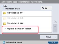 L'indirizzo MAC è un codice identificativo univoco della scheda di rete. Tale indirizzo non cambia anche se viene modificato l'indirizzo IP. Oltre all'indirizzo IP, è possibile impostare il filtro invio e il filtro ricezione per l'indirizzo MAC. Per impostare il filtro per l'indirizzo MAC, attenersi alla procedura riportata di seguito.