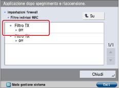 Selezionare [Filtro indirizzi MAC] → [Filtro TX].