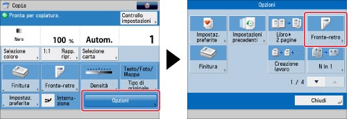 Questa sezione riporta la procedura per la registrazione delle impostazioni per la copia di un documento ad una facciata su entrambi i lati del foglio, l'aggiunta dei numeri di pagina e l'esportazione di tali impostazioni in un'altra macchina.