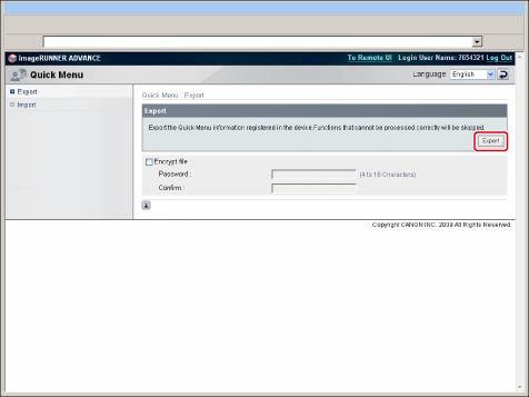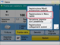 Registrando le impostazioni delle funzioni utilizzate di frequente, come Copia, Scansione e invio e Scansione e memorizzazione nel Menu rapido, è possibile utilizzare tali impostazioni anche su un'altra macchina.