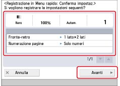 L'utilizzo di questa funzione aumenta l'efficienza delle operazioni standard eliminando l'esigenza di specificare tutte le volte le stesse impostazioni.