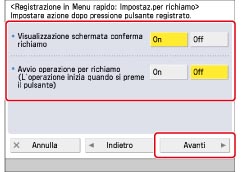 Selezionare le impostazioni di richiamo → selezionare [Avanti].