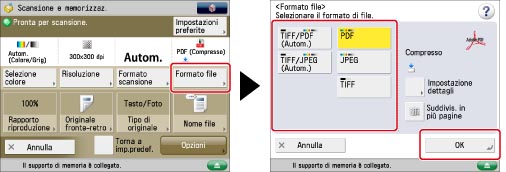 Selezionare [Formato file] → selezionare un formato di file → premere [OK].