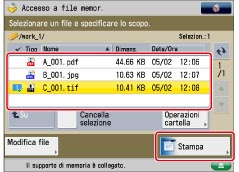 Sfogliare fino al livello (cartella) in cui è registrato il file da stampare.