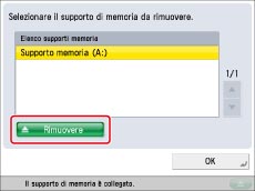 Selezionare il supporto memoria da rimuovere → premere [Rimuovere].