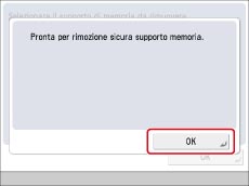 Se non viene visualizzato il messaggio che indica che è possibile rimuovere il supporto memoria, ripetere la procedura come indicato ai punti 18 e 19.