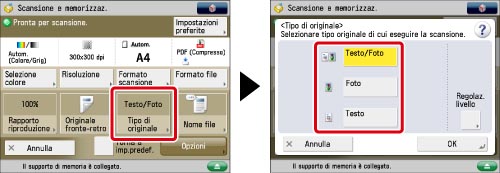 Il tipo di originale può essere selezionato manualmente in base al tipo di immagine.