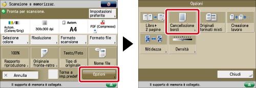 Il modo Cancellazione bordi libro può essere impostato solo per i formati carta originali visualizzati sul pannello digitale.
