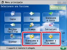 Selezionare [Scansione e memorizzaz.] o [Accesso a file memor.] nella schermata Menu principale.