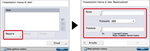 Per evitare problemi di funzionamento alla macchina, si consiglia di non registrare un'Area di condivisione diversa dall'Area di condivisione di un'altra macchina della serie imageRUNNER remota pubblica.