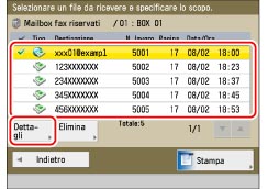 Selezionare il numero di mailbox per fax riservati desiderata.