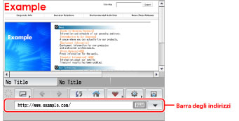 per visualizzare la cronologia degli URL immessi. È possibile visualizzare una pagina web dalla cronologia. La cronologia degli URL immessi può essere cancellata premendo [Canc. tutto] in [Cronologia] (da Menu). (Vedere "Cancellazione della cronologia URL".)|