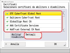 Selezionare un certificato → premere [Abilita/Disabilita].
