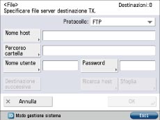 Per [Nome host] è possibile immettere un massimo di 128 caratteri alfanumerici dal pannello comandi. Per [Percorso cartella] è possibile immettere un massimo di 255 caratteri alfanumerici. Specificare le impostazioni del server non superando il limite dei caratteri ammessi.