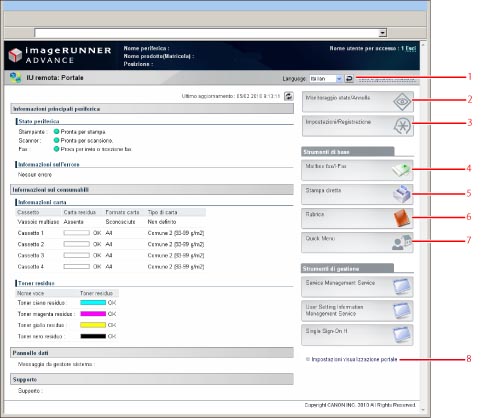 Le operazioni disponibili per la IU remota possono variare per l'amministratore e gli utenti generici.
