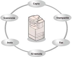 La funzione di trasmissione (Invio) permette di trasmettere ai file server o tramite e-mail o come I-fax i dati di un'immagine o di un documento che sono stati acquisiti. Sono supportati diversi formati di file (PDF, JPEG, TIFF e XPS) per offrire una maggiore flessibilità negli ambienti digitalizzati.