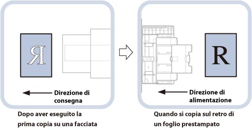 Per ulteriori informazioni sulla direzione di stampa dei fogli prestampati (carta intestata, ecc.), vedere "Rapporto tra l'orientamento originale e l'orientamento della carta".