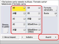 Per selezionare un formato carta in pollici, selezionare [Formato pollici].