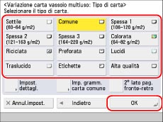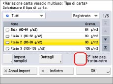È possibile registrare un tipo di carta diverso da quelli elencati in [Impost. dettagl.] nella schermata Multi-Purpose Tray Settings: Vedere "Registrazione/modifica dei tipi di carta personalizzati".