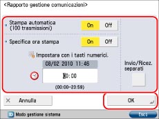 Quando viene visualizzato il messaggio <Controllare stampante. Chiamare un rappresentante per l'assistenza.> per indicare che non è disponibile la funzione di stampa, la macchina stampa automaticamente un rapporto di gestione dopo la risoluzione del problema. Il rapporto riporta gli ultimi 100 risultati delle comunicazioni.