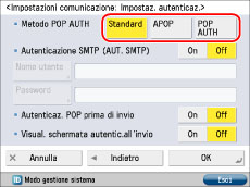 Selezionare [Off] per <Autenticaz. POP prima di invio> → specificare <Visual. schermata autentic. all'invio>.